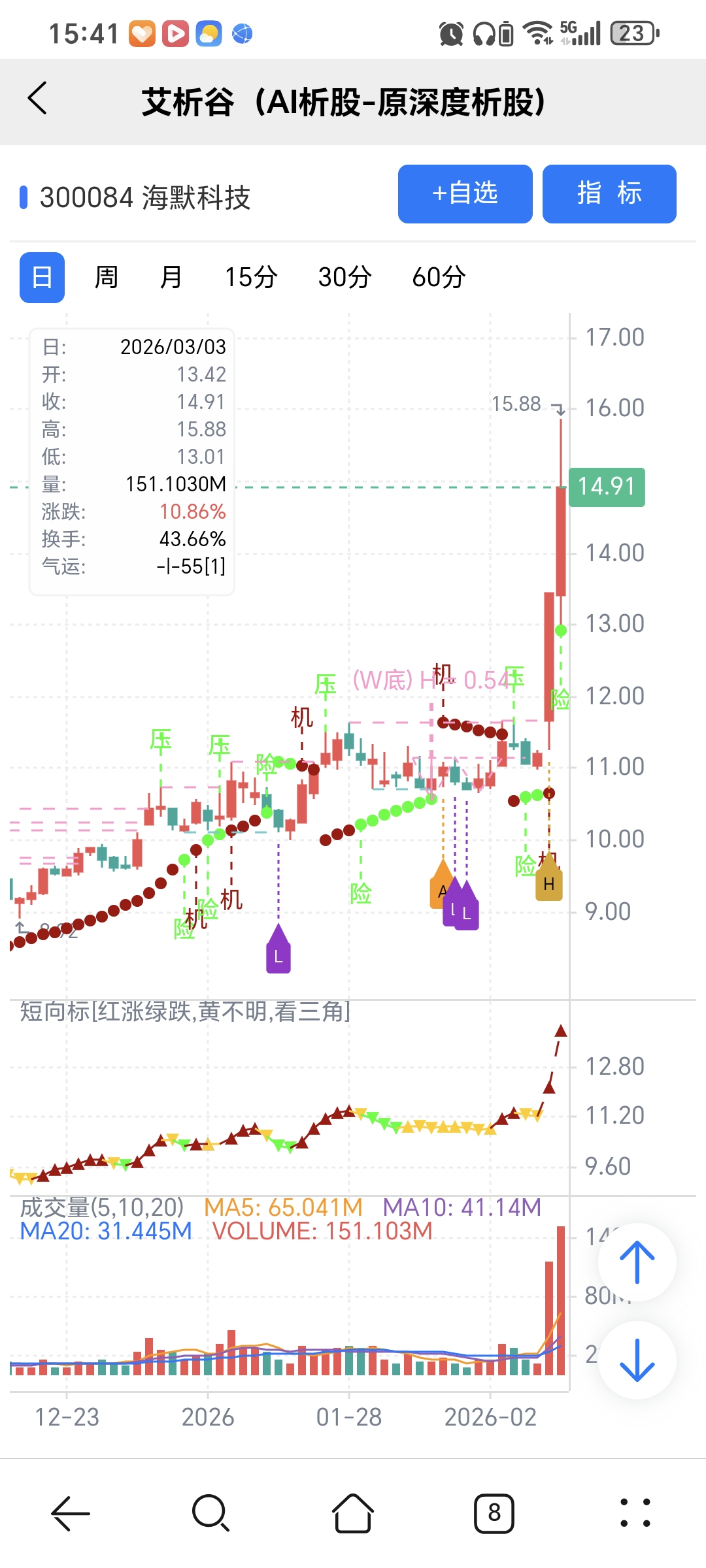 风险:股价下穿艾短波或红变绿、绿字。