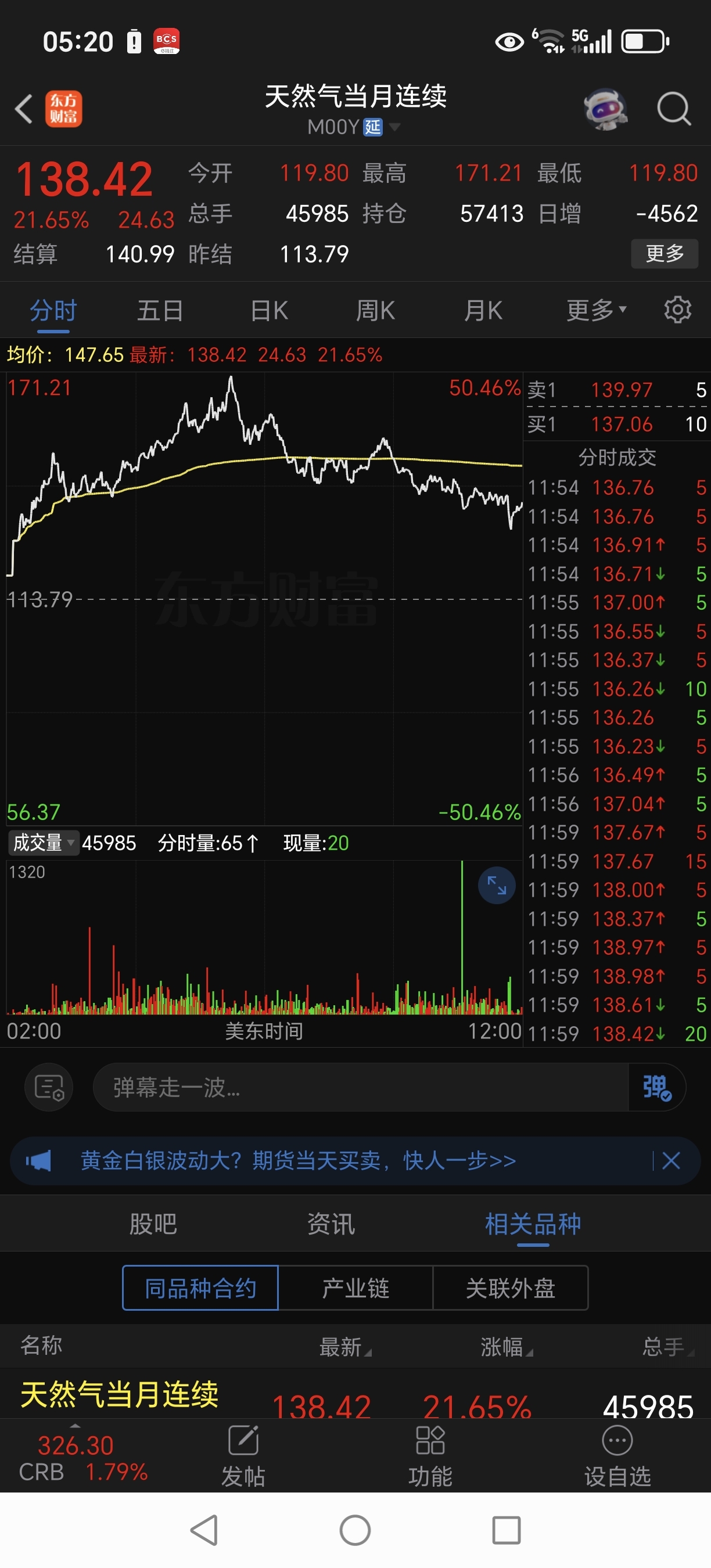 看看天然气期货涨成啥样