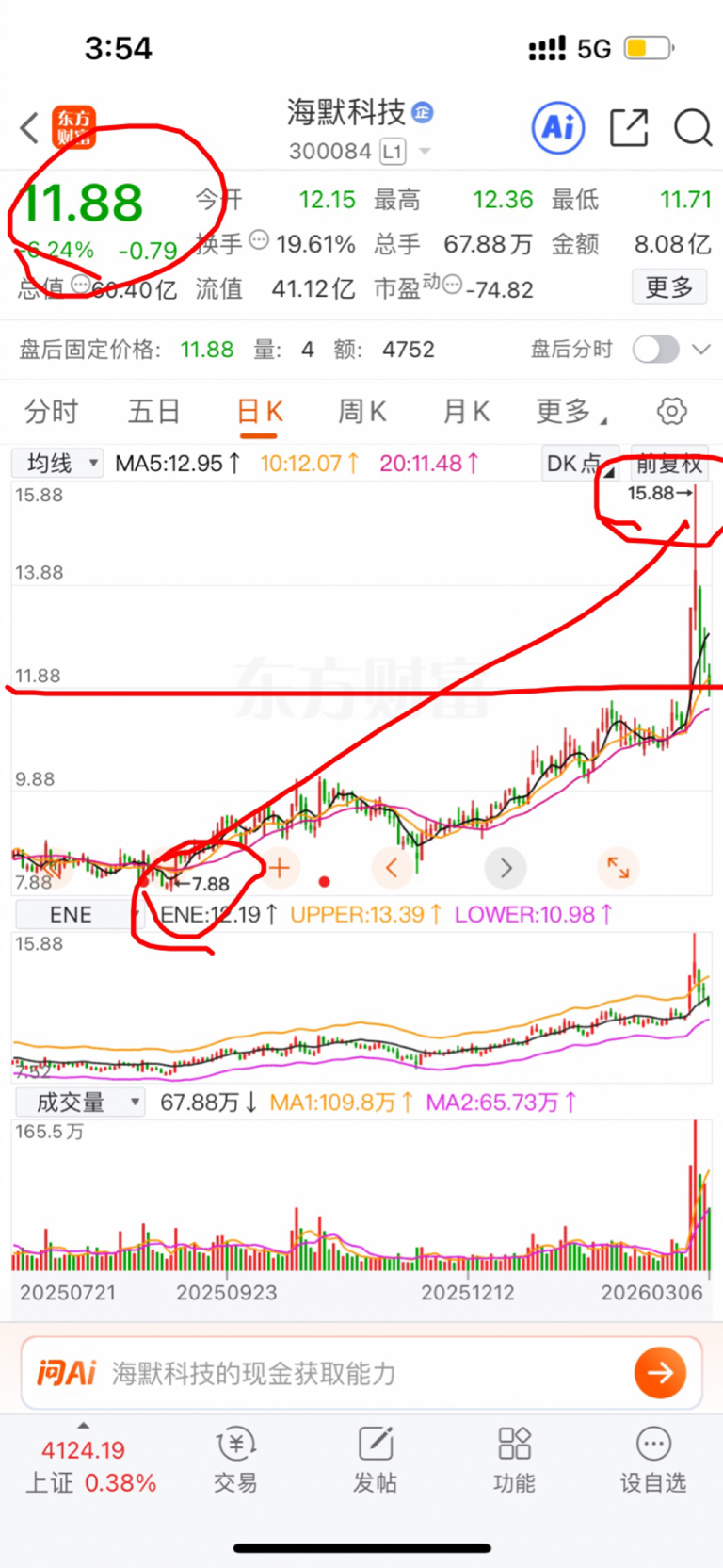 $海默科技(SZ300084)$ 7.88-15.88,回调4块,要到19.88了。