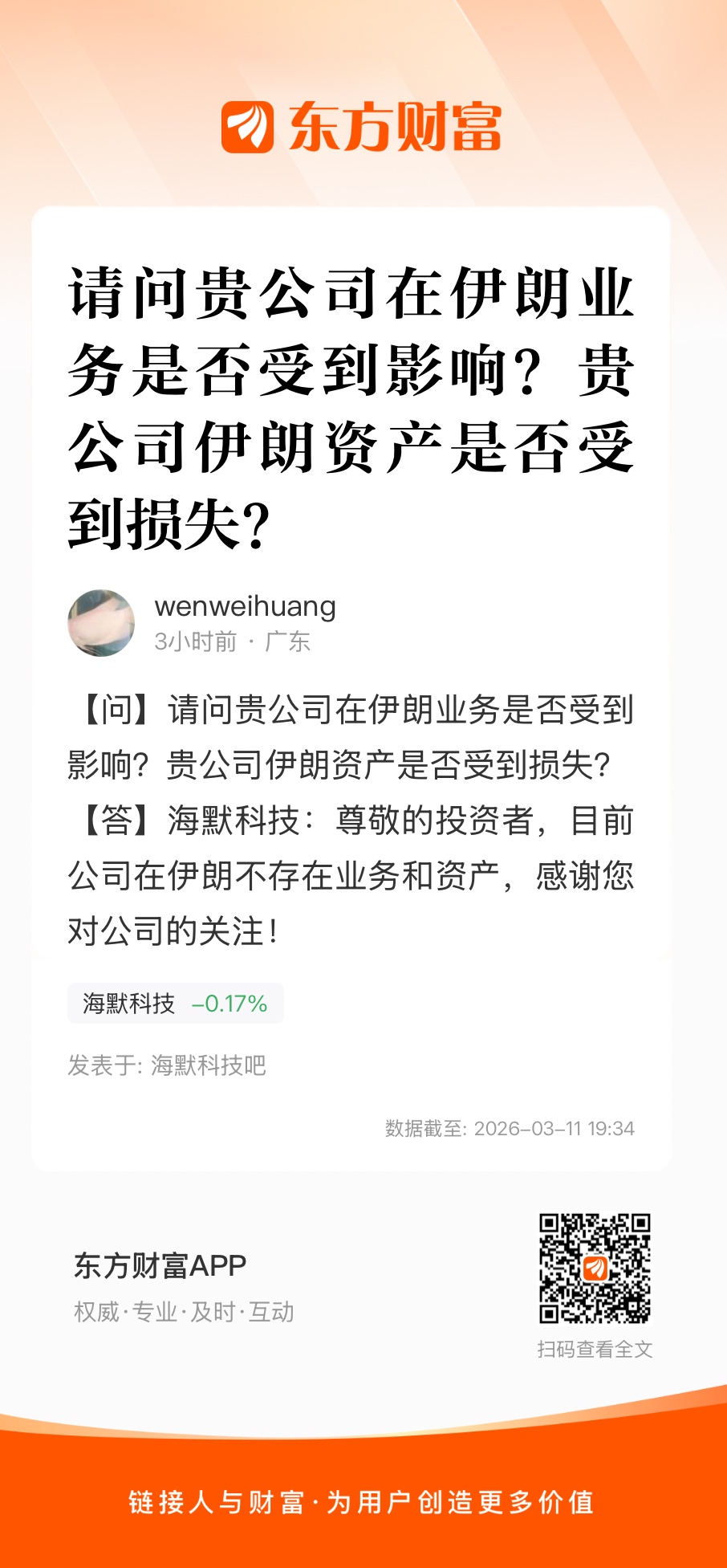 $海默科技(SZ300084)$ 公司伊朗的资产没有被炸