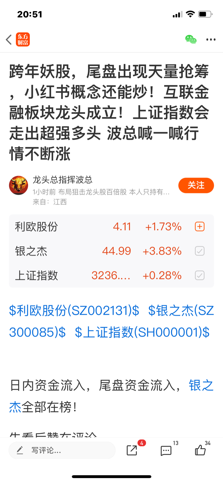 郑重声明:用户在财富号/股吧/博客等社区发表的所有信息(包括但不限于文字、视频、音频、数据及图表)仅代表个人观点,与本网站立场无关,不对您构成任何投资建议,据此操作风险自担。请勿相信代客理财、免费荐股和炒股培训等宣传内容,远离非法证券活动。请勿添加发言用户的手机号码、公众号、微博、微信及QQ等信息,谨防上当受骗!