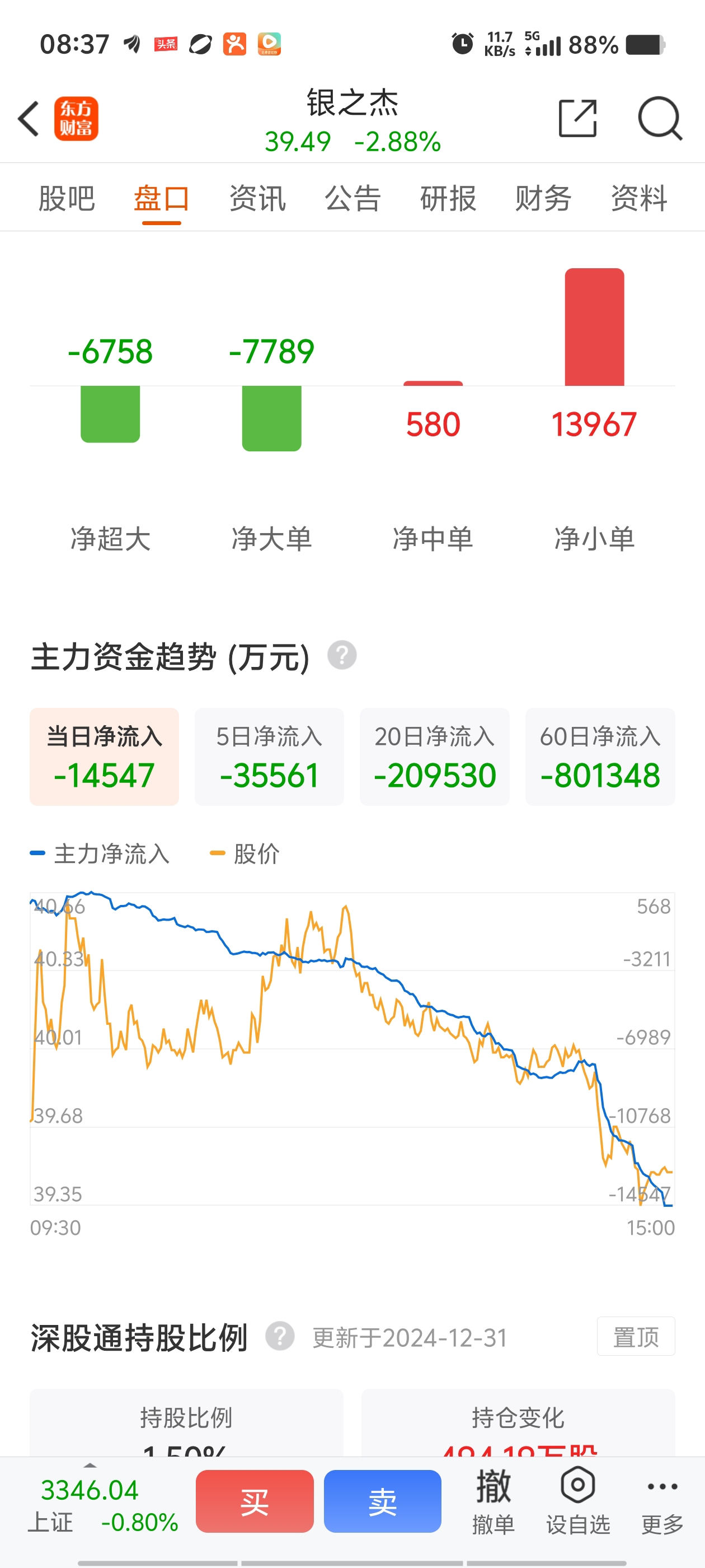 这个烂股主力天天出货,我还是坚定33.88来抄底
