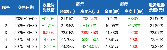 银之杰:融资净买入708.54万元,融资余额21.91亿元(10-09)