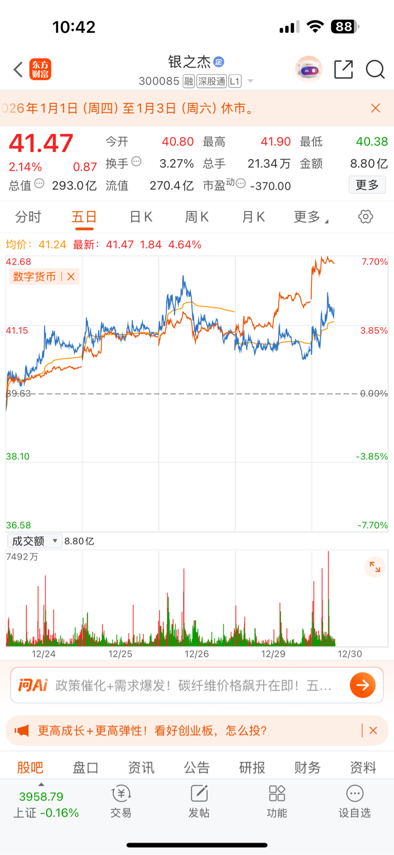 $银之杰(SZ300085)$ 五日数字货币板块都涨了8个点,这玩意连板块一半都没跑赢