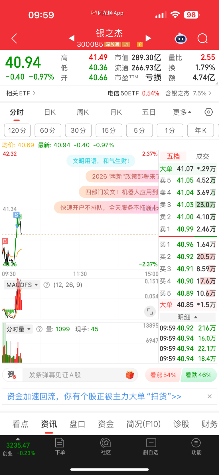 $银之杰(SZ300085)$ 我已经T完了,剩下的节后了,这种货色纯靠别人暴涨才会带一点还是绿的,只要板块和龙头暴涨完回落一点点,它就是惊弓之鸟先砸为敬