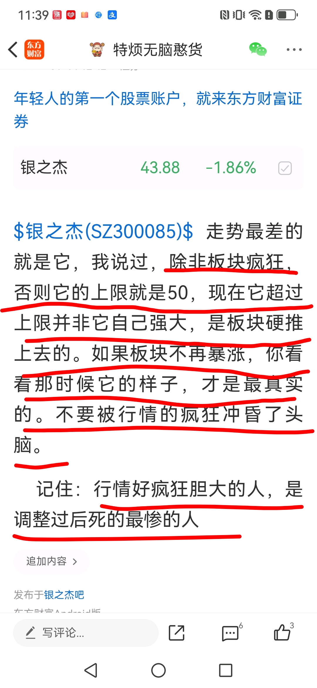 $银之杰(SZ300085)$ 这是我前天中午收盘讲的话,下午一开盘就应验,现在更是连续应验,这就是水平,为什么骂你们,你们确实太差,我根本看不上你们这样的