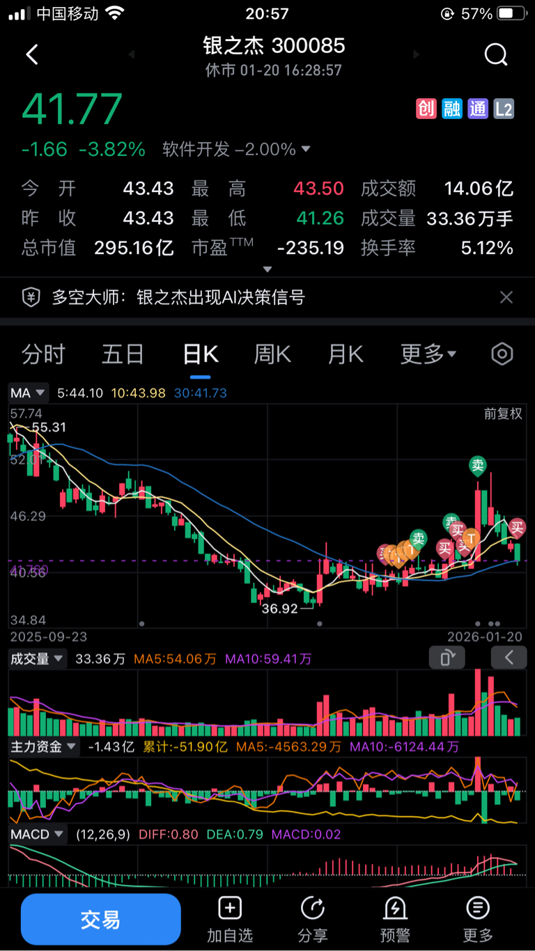 $银之杰(SZ300085)$ 哈哈哈 看这几天跌的这么有个性就回来陪你玩玩