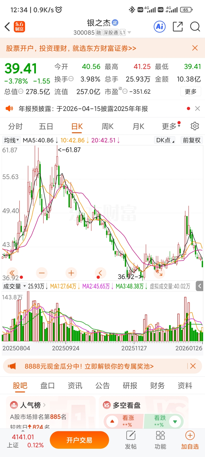 $银之杰(SZ300085)$ 趋势向下了,下午开盘就跑