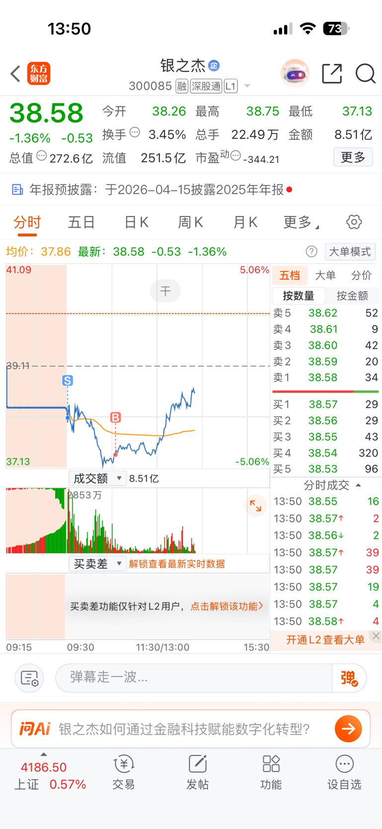$银之杰(SZ300085)$ 只买了半仓回来,涨3个点回回本!