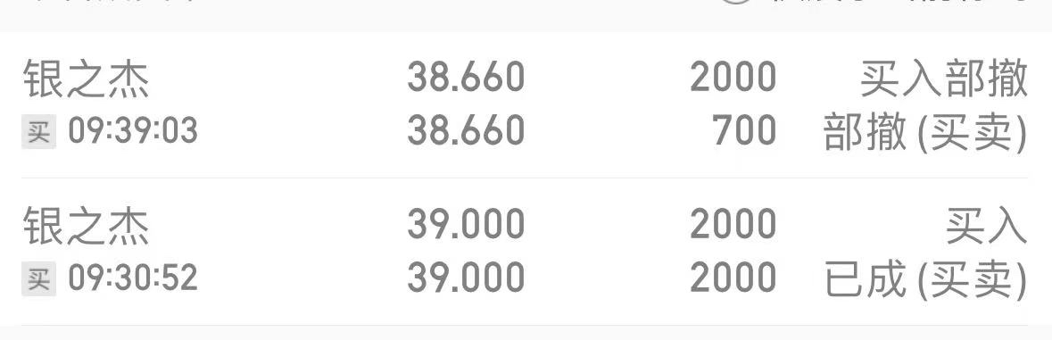 $银之杰(SZ300085)$ 38.66只成交了700股
