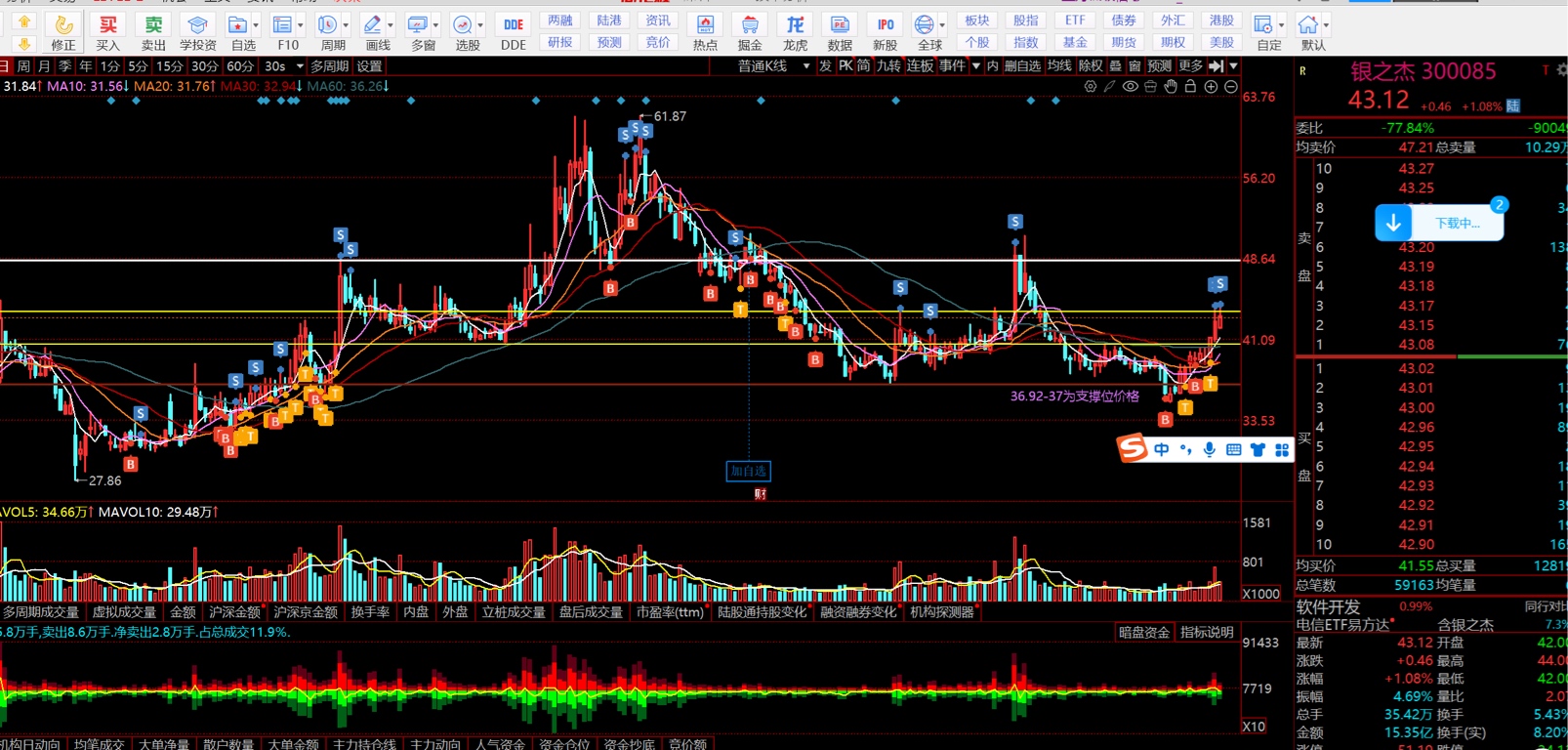 $银之杰(SZ300085)$ 接下去五日线低吸,突破43.5成功站稳在买回去