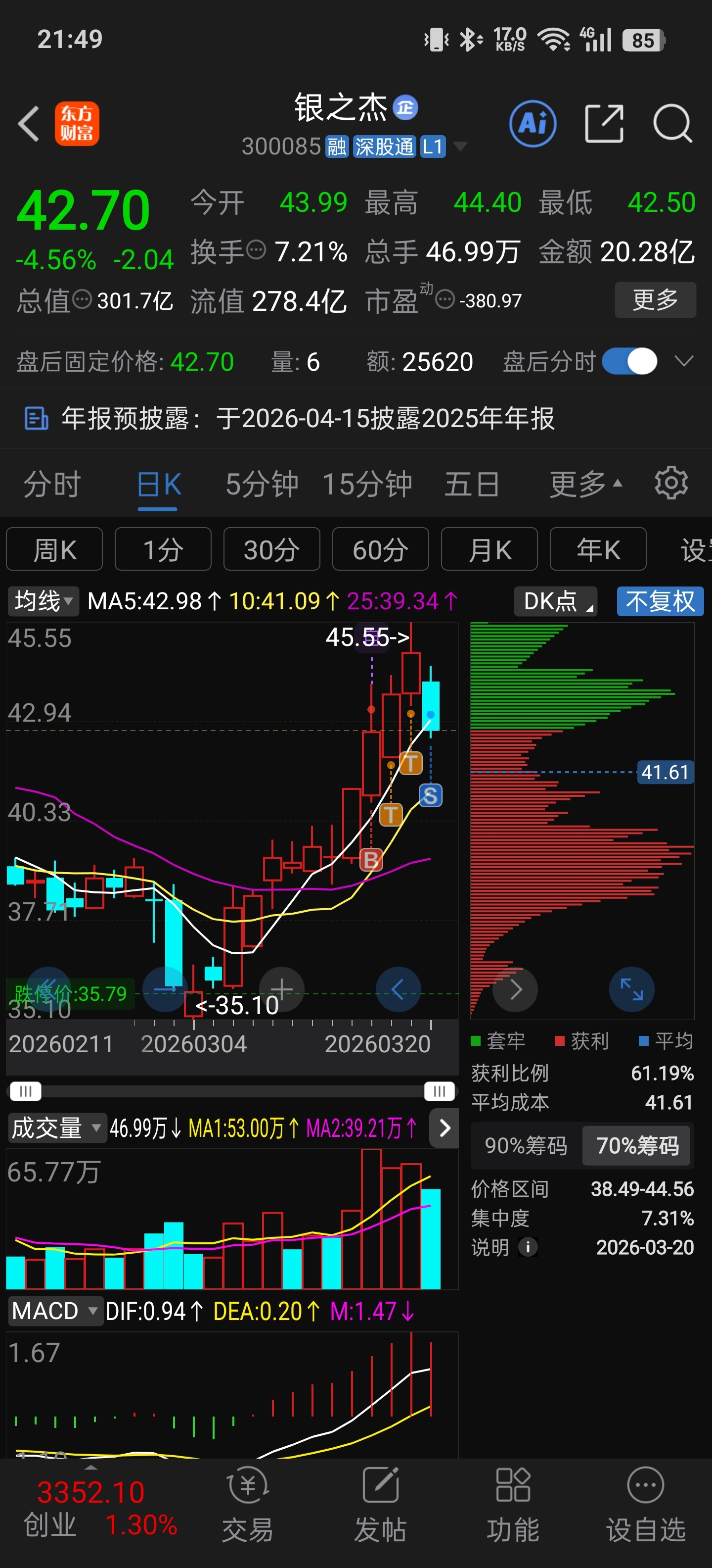 $银之杰(SZ300085)$ 好气被洗了…… 赚那么点,就因为看到今天有点放量。就因为看到有点点顶部结构,觉着要回调,结果盘后就利好……