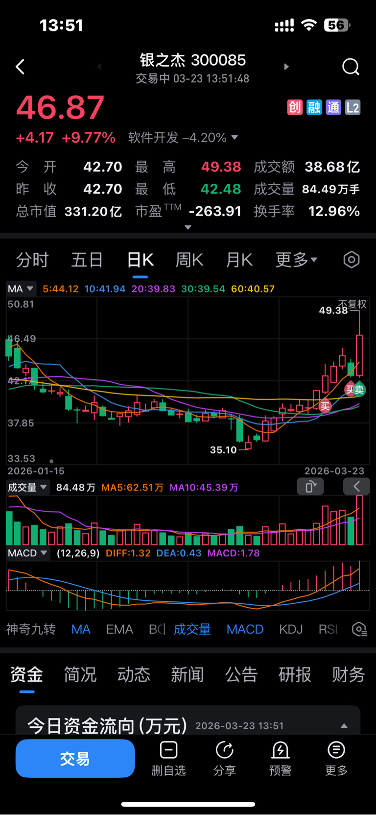 $银之杰(SZ300085)$ 减了一半。50的压力不是那么好过的。