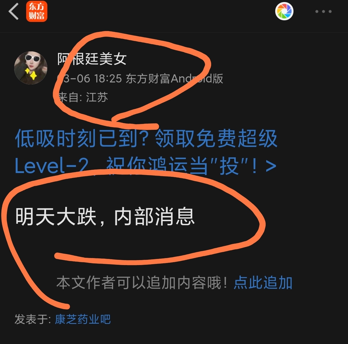 温馨提示: 1.根据《证券法》规定,禁止编造、传播虚假信息或者误导性信息,扰乱证券市场;2.用户在本社区发表的所有资料、言论等仅代表个人观点,与本网站立场无关,不对您构成任何投资建议。用户应基于自己的独立判断,自行决定证券投资并承担相应风险。《东方财富社区管理规定》