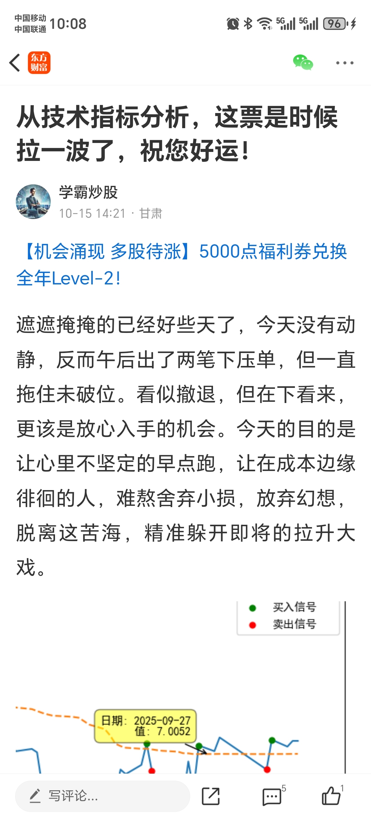 $康芝药业(SZ300086)$ 昨天说了要从技术上分析要拉了!不怎么明白我的贴纸为什么手机和电脑上不同步?在电脑上能看到,在手机上股吧中就不显示呢?有谁了解这情况吗?【精准预测+1】