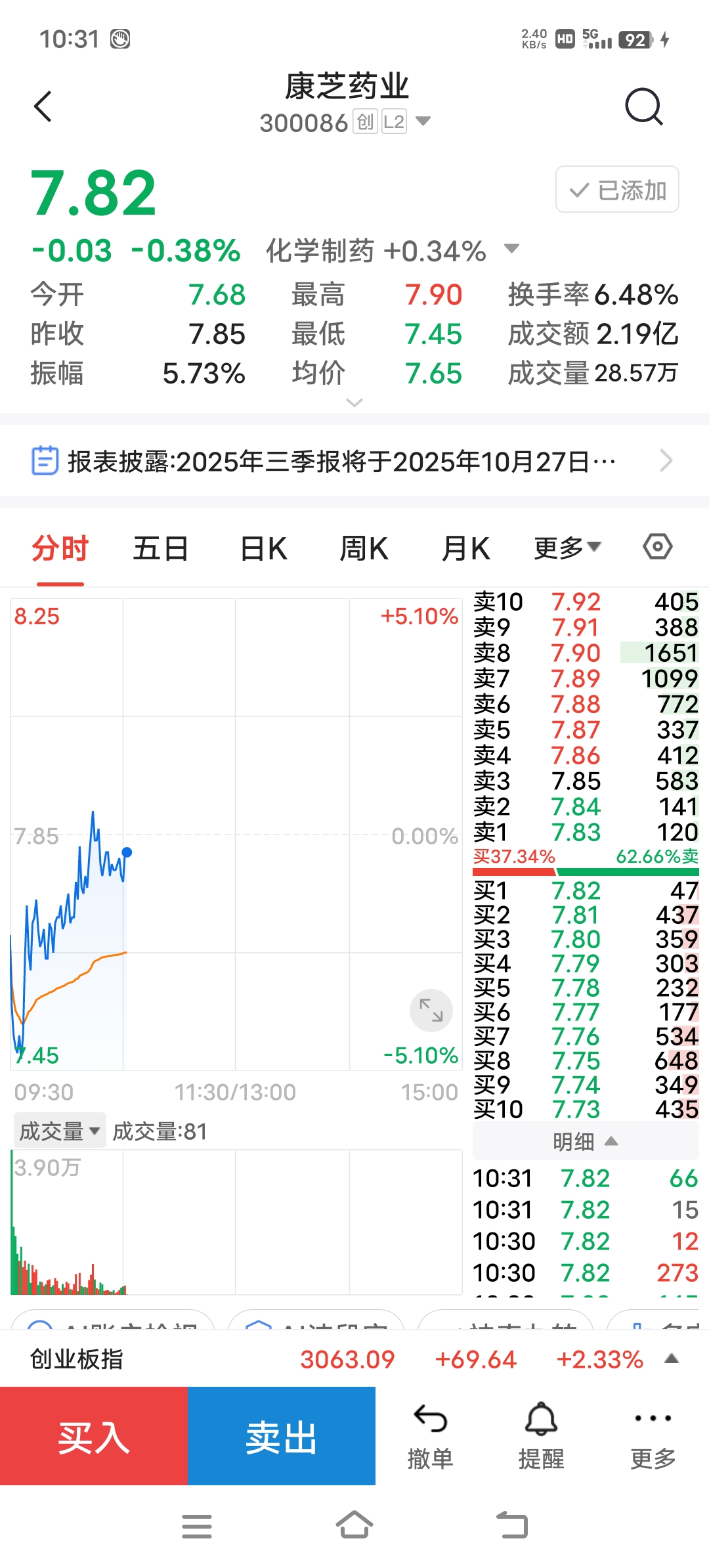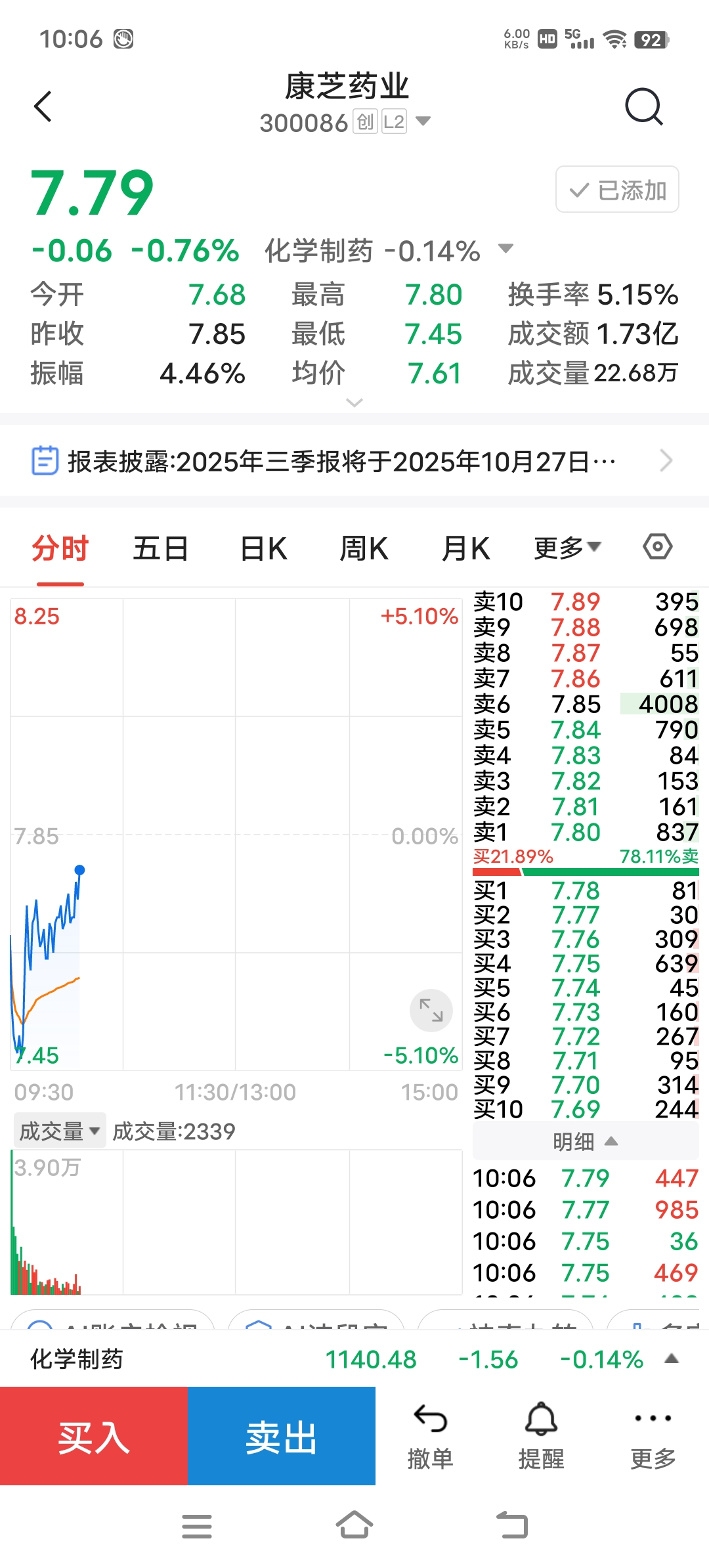 康芝药业:7.85元7.90元有超级大单压的喘不过气来了?