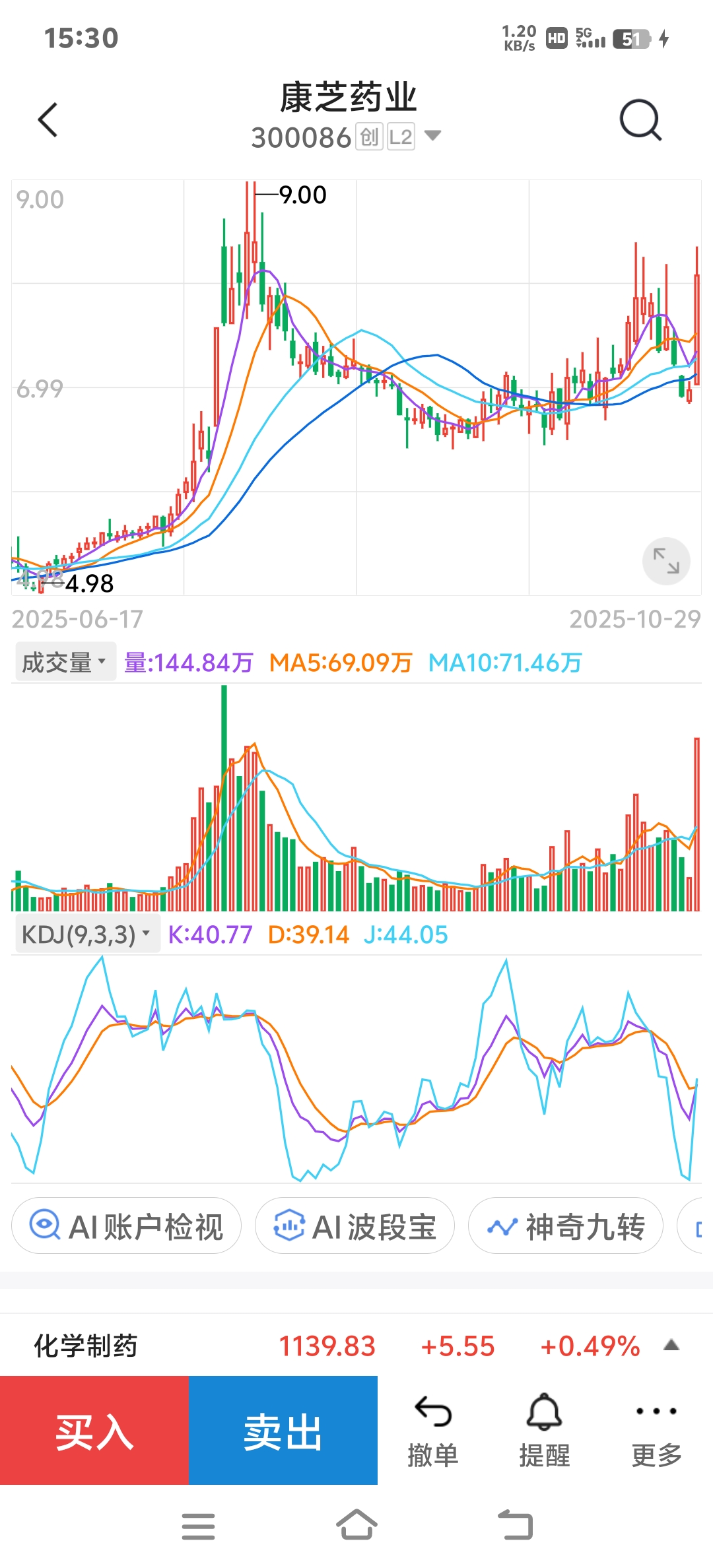 康芝药业:突然放巨量大阳线突破压力位,若是空中加油的话,那这一波就得上10元了……
