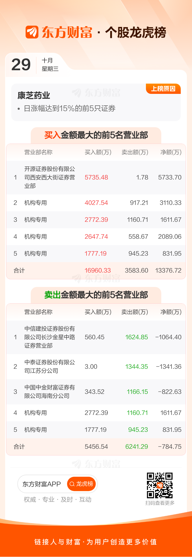 交易所2025年10月29日公布的交易公开信息显示,康芝药业因成为日涨幅达到15%的前5只证券上榜。康芝药业当日收报8.07元,涨跌幅15.95%,偏离值15.95%,换手率32.87%,成交额11.51亿。