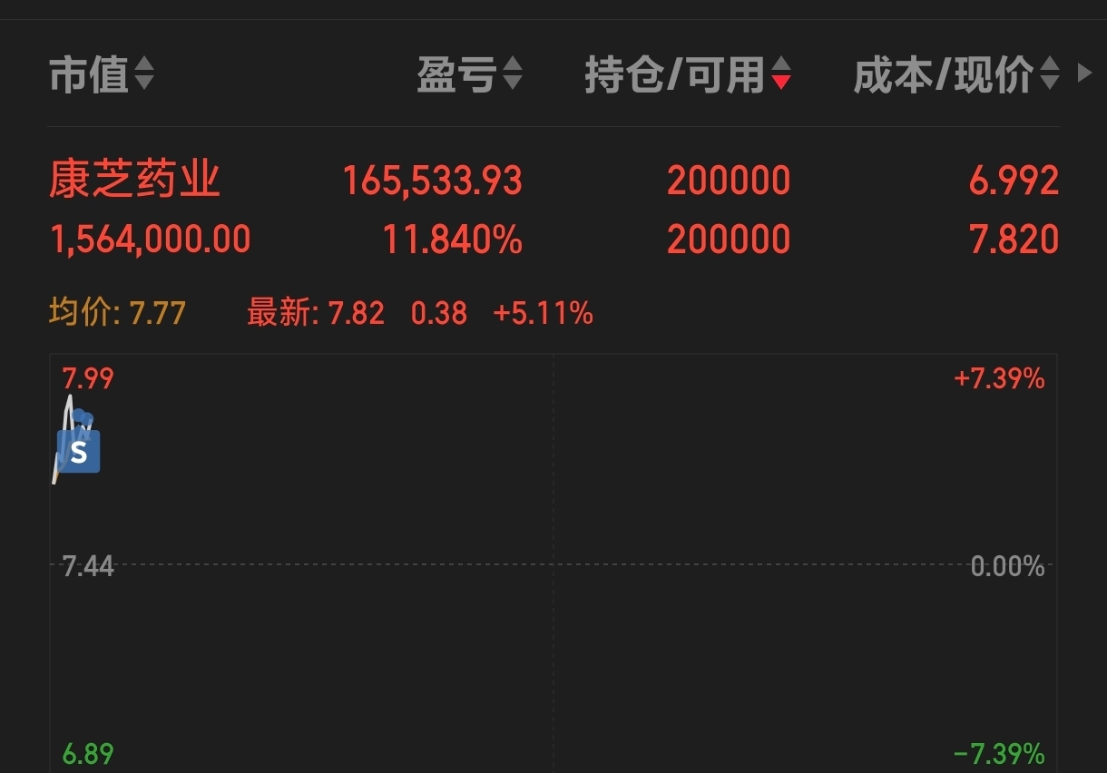 $康芝药业(SZ300086)$ 基本上全跑了,只留20w股底仓