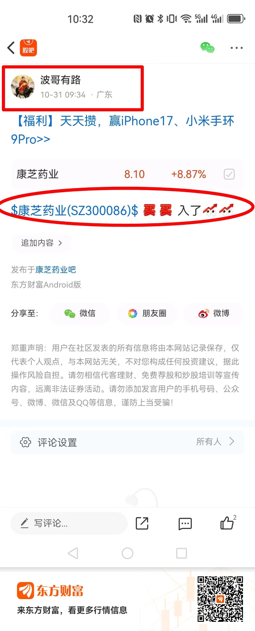 温馨提示: 1.根据《证券法》规定,禁止编造、传播虚假信息或者误导性信息,扰乱证券市场;2.用户在本社区发表的所有资料、言论等仅代表个人观点,与本网站立场无关,不对您构成任何投资建议。用户应基于自己的独立判断,自行决定证券投资并承担相应风险。《东方财富社区管理规定》