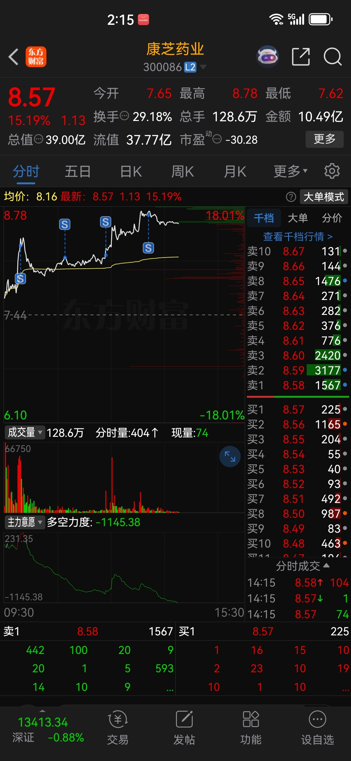 $康芝药业(SZ300086)$  我卖完了你可以封板了