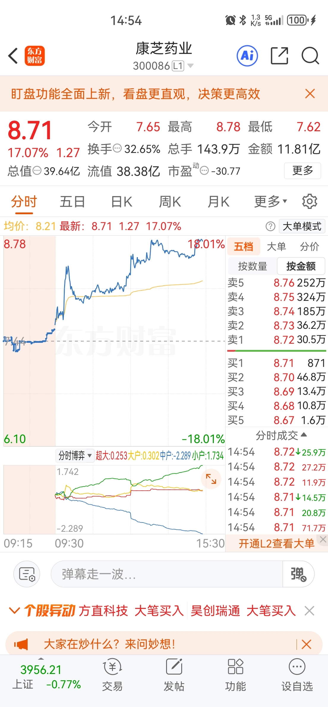 $康芝药业(SZ300086)$ 散户牛皮,扛大旗了
