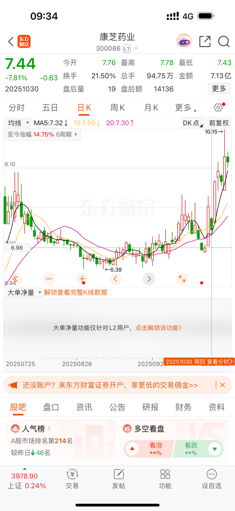 $康芝药业(SZ300086)$ 又套住了,10块的本;主力应该7块左右建仓。原来这两天都是出货