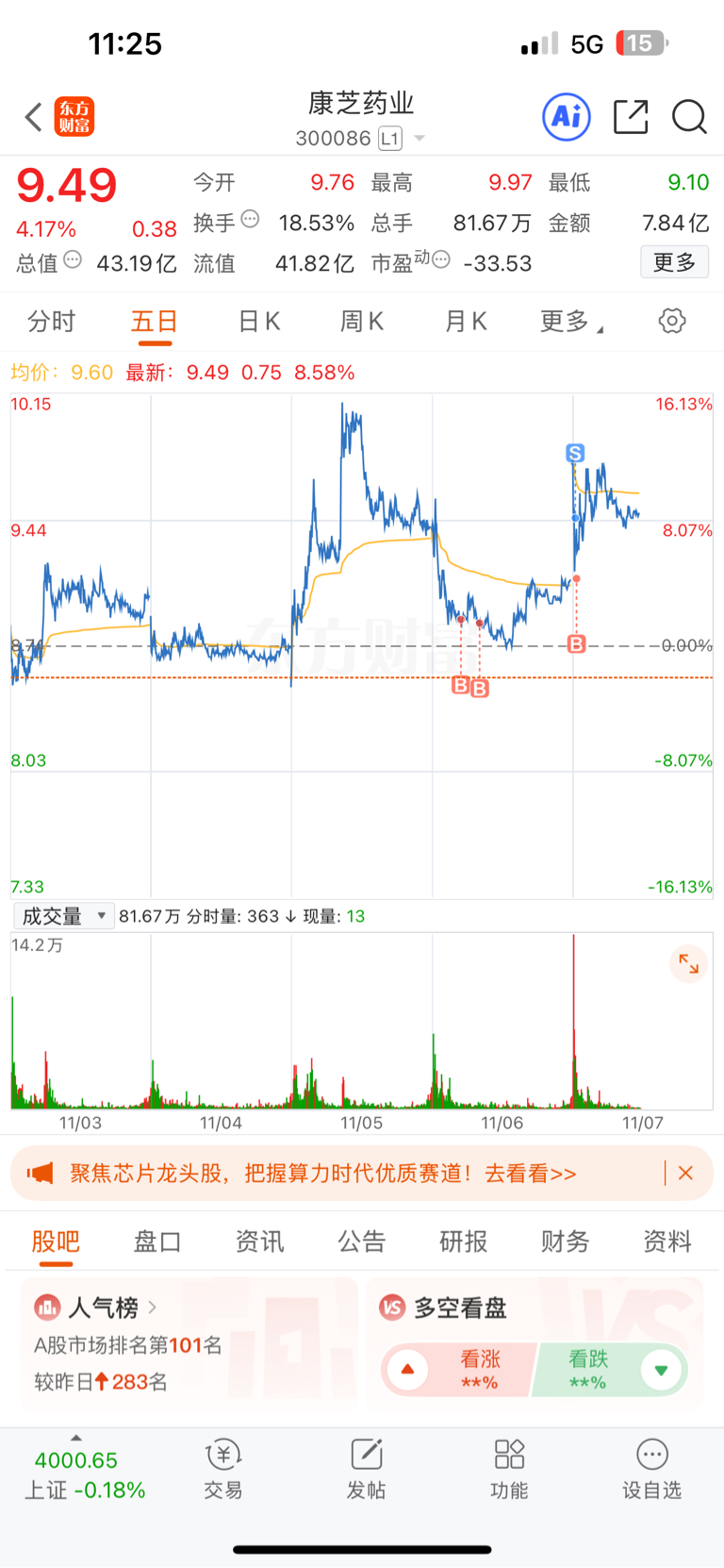 $康芝药业(SZ300086)$ 早上睡晚了2分钟,不然我的T会更好