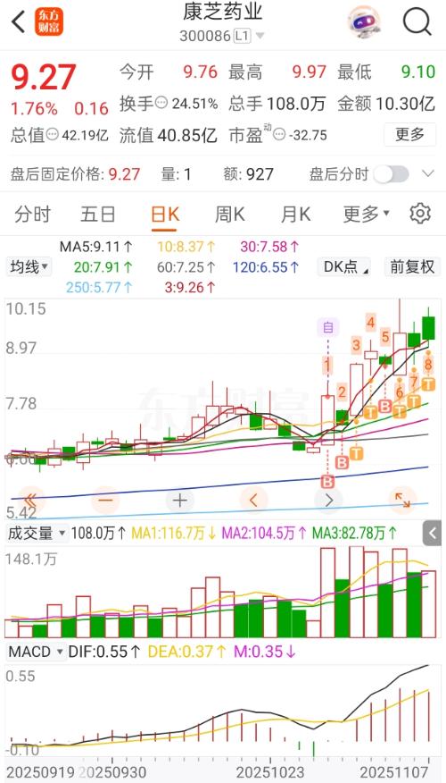 $康芝药业(SZ300086)$  我拿到了一个20厘米涨停之后再出,不涨停不出