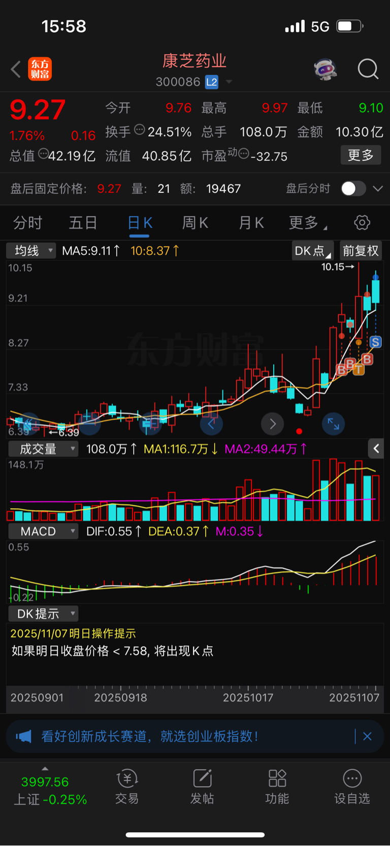 $康芝药业(SZ300086)$ 感觉卖飞了,周一希望给我机会接回