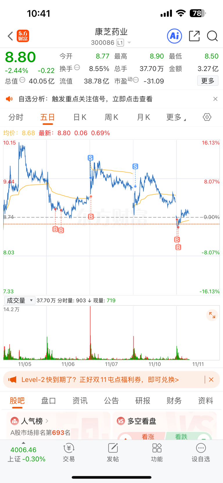 $康芝药业(SZ300086)$ 带血筹码很香啊