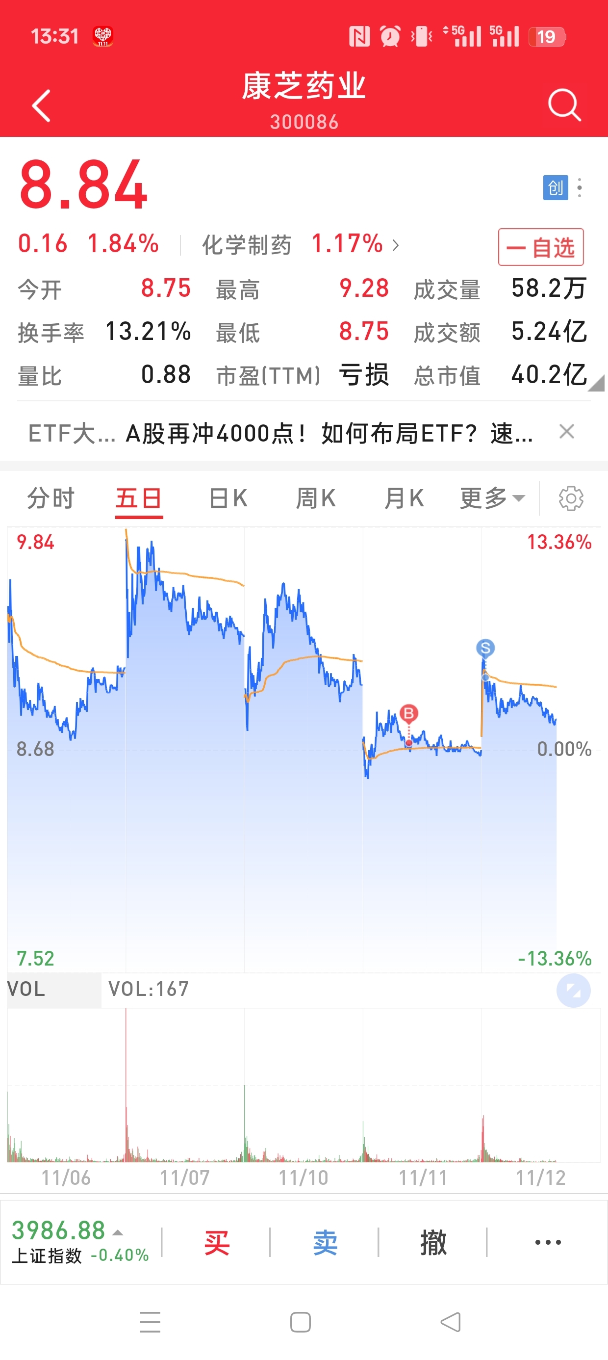 $康芝药业(SZ300086)$ 有肉就走,没肉就挺。