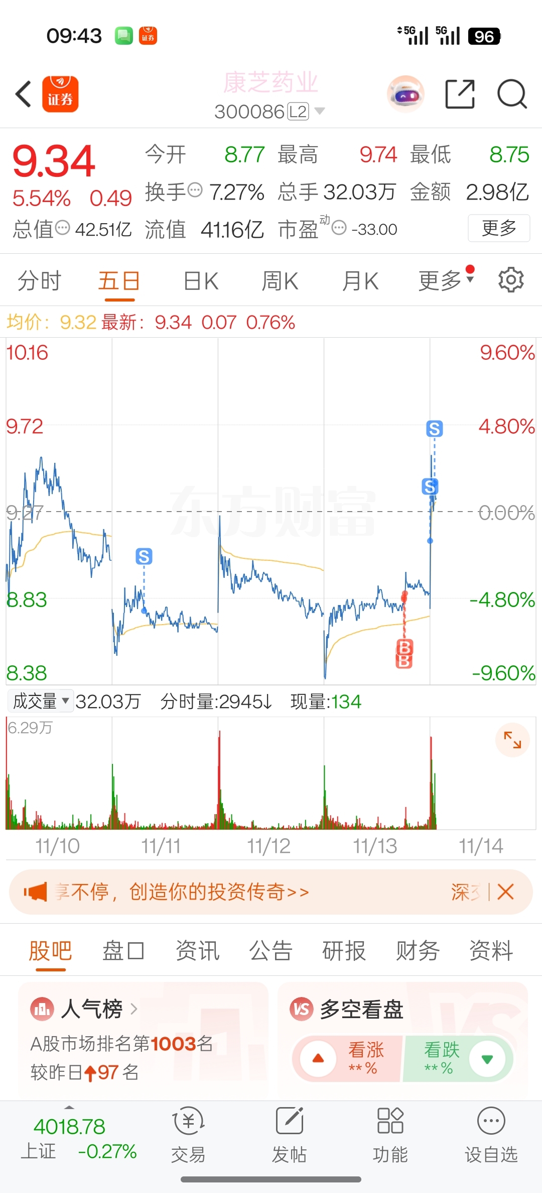 $康芝药业(SZ300086)$ 昨天加了,开盘出一半