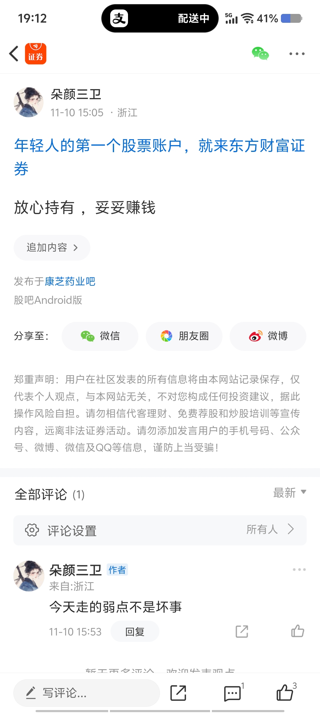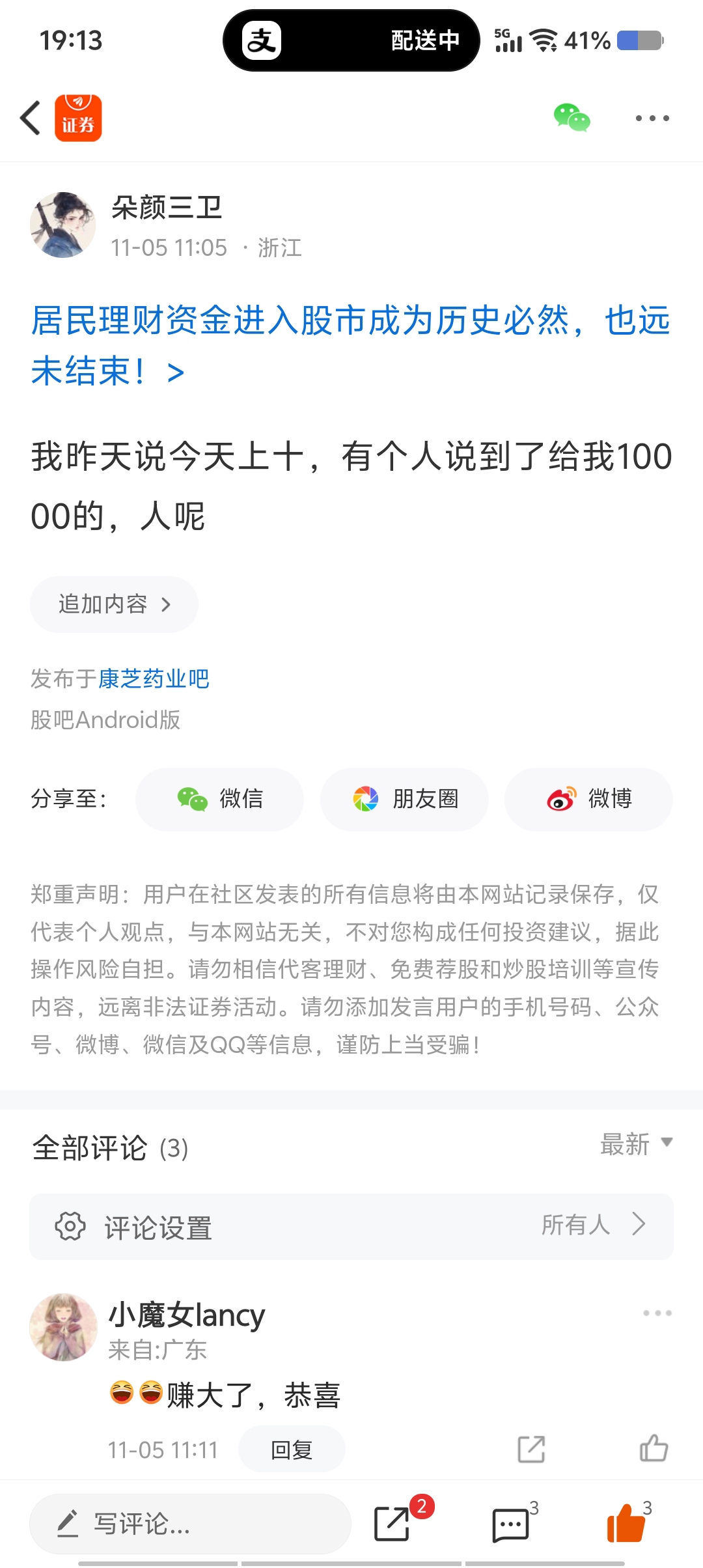 温馨提示: 1.根据《证券法》规定,禁止编造、传播虚假信息或者误导性信息,扰乱证券市场;2.用户在本社区发表的所有资料、言论等仅代表个人观点,与本网站立场无关,不对您构成任何投资建议。用户应基于自己的独立判断,自行决定证券投资并承担相应风险。《东方财富社区管理规定》