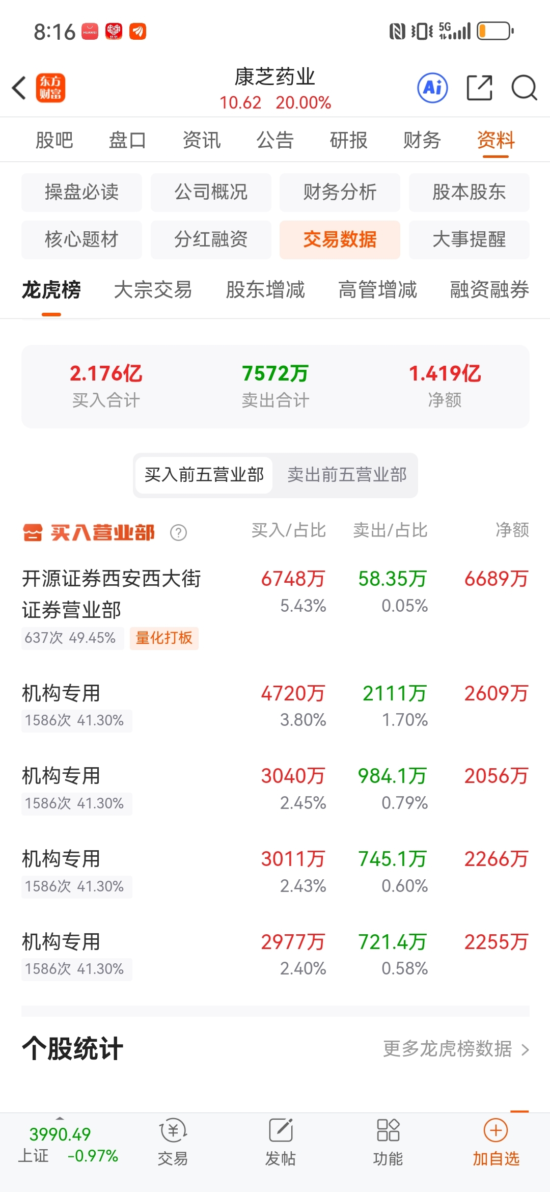 $康芝药业(SZ300086)$ 小心点,量化是高开砸盘