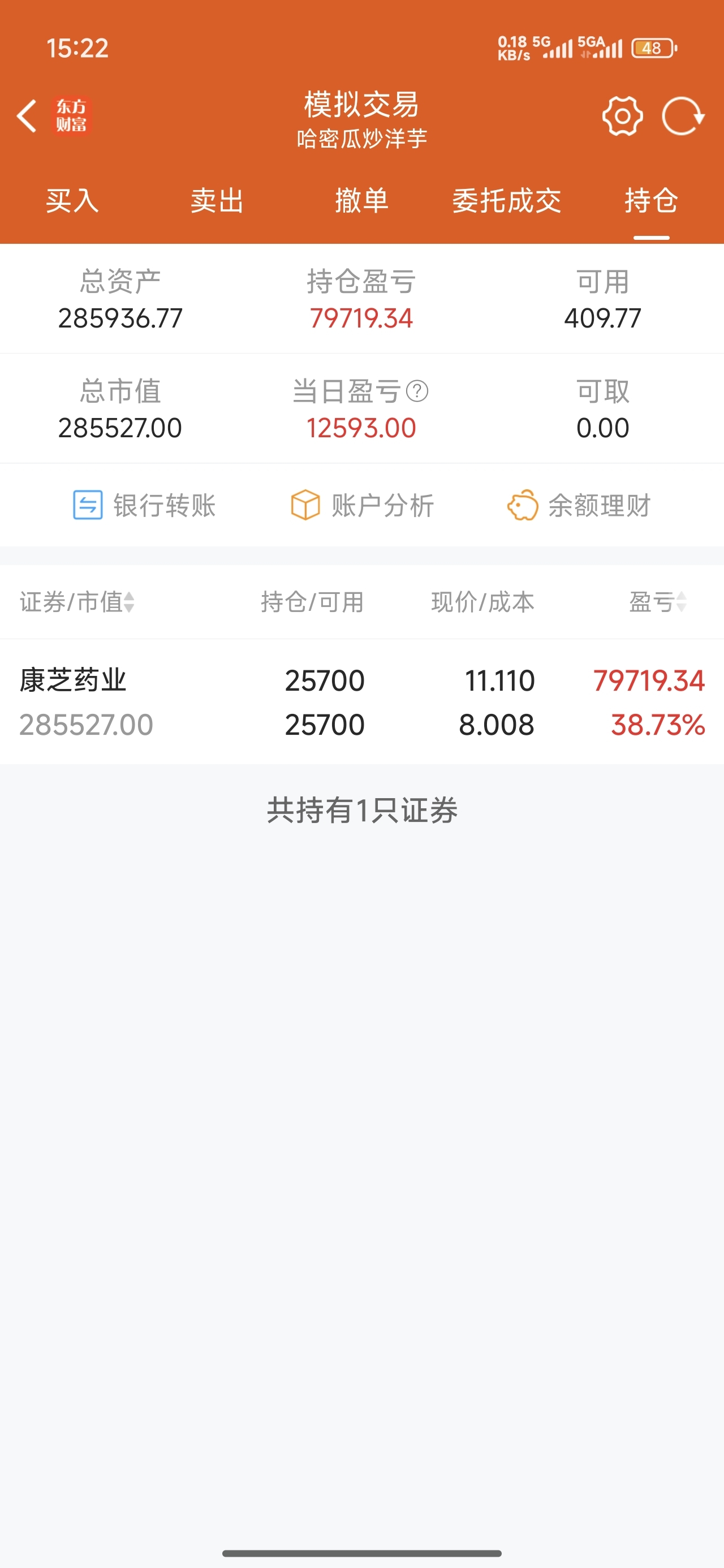 $康芝药业(SZ300086)$ 只有模拟盘才能大赚