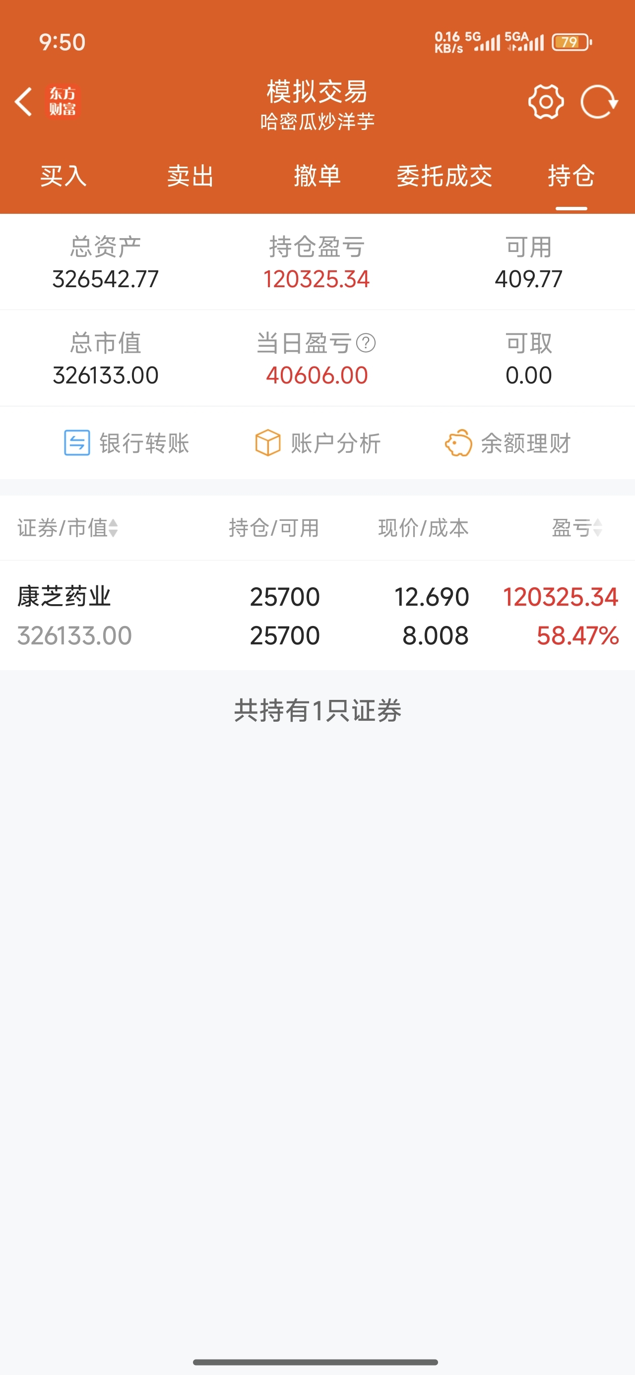 $康芝药业(SZ300086)$ 还是模拟盘牛逼,20万的本金