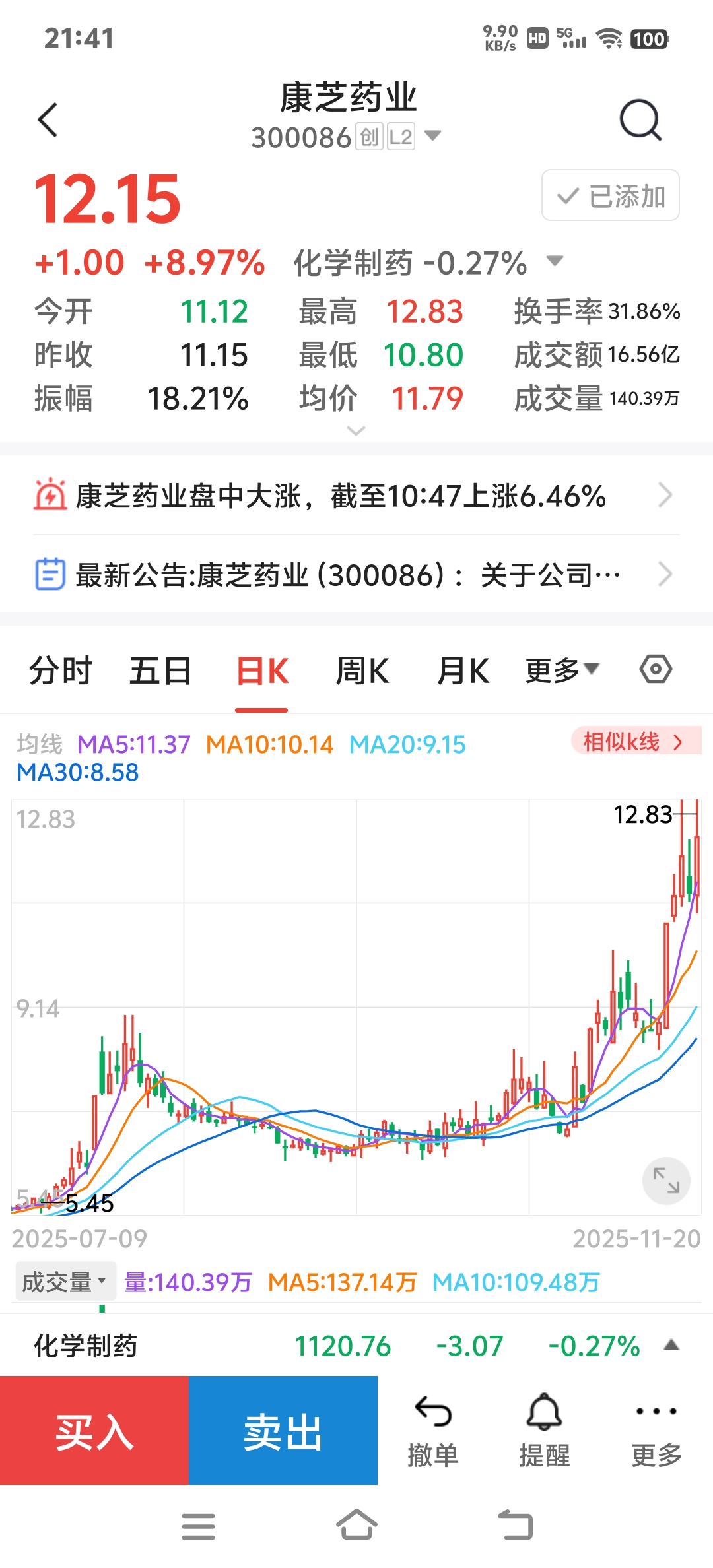 海南封关之后的炒作空间更大更久更多政策性利好继续推出公诸于众…这一点与九.三大阅兵的题材截然不同!!所以,我坚定选择康芝药业长期高换手率滚动操作股价不到25元绝不放弃参与反复低吸高抛策略!!!