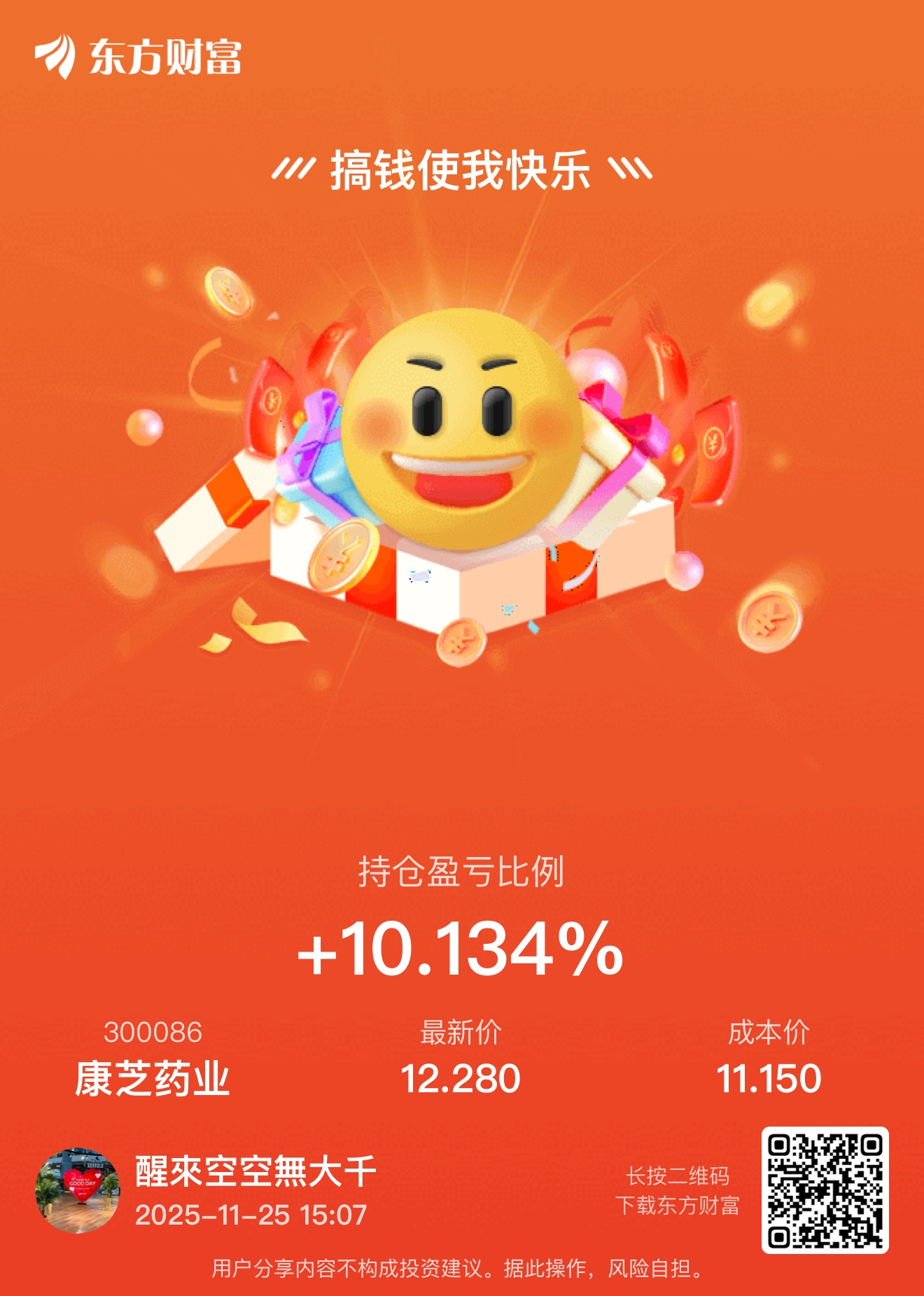 $康芝药业(SZ300086)$ 板砸了$瑞斯康达(SH603803)$ 来的,昨天空gou葫芦大侠侠说康芝见顶了,井底之蛙不知道何为天顶。