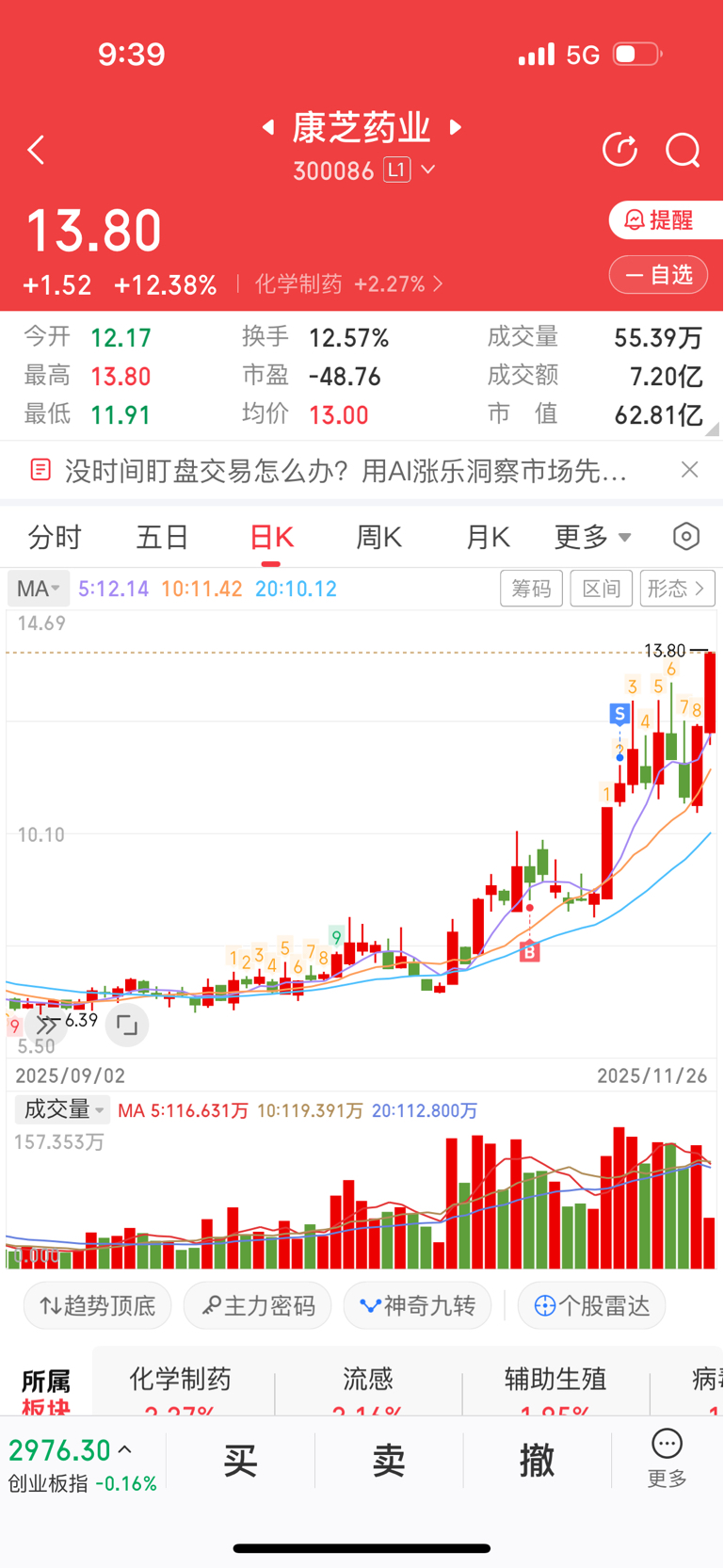$康芝药业(SZ300086)$ 后悔呀 没卖准备翻倍换去海峡亏我14个点