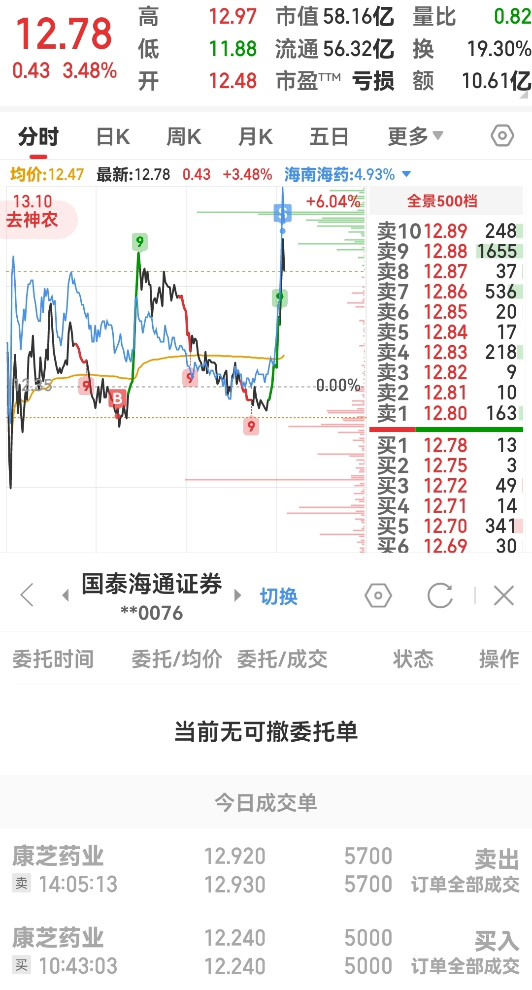 $康芝药业(SZ300086)$ 兄弟们,今天操作已完成,还是不够完美,11.8能上车就好了,下星期再战