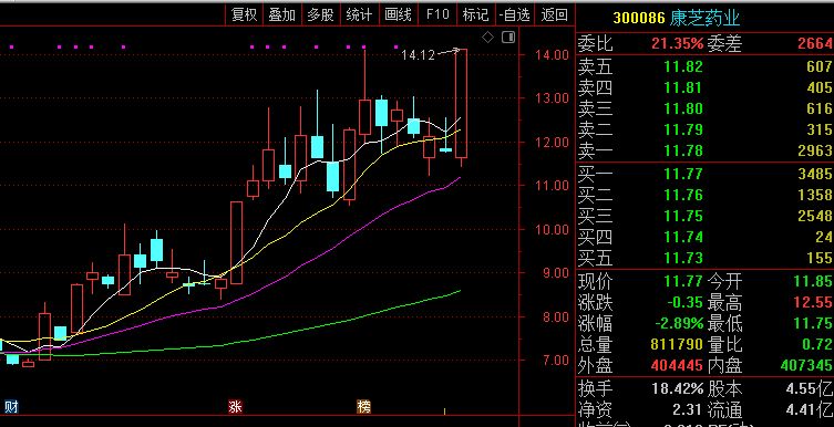 康芝药业明天涨停价也不错的,恰好是近期的新高14.12元。