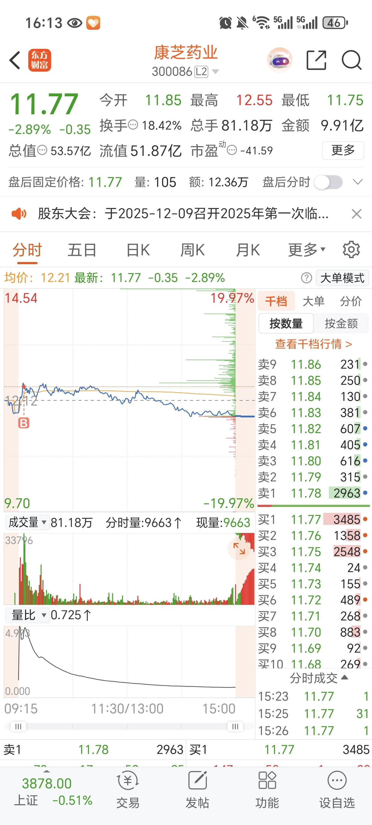 $康芝药业(SZ300086)$ 30万玩的还剩3万多了