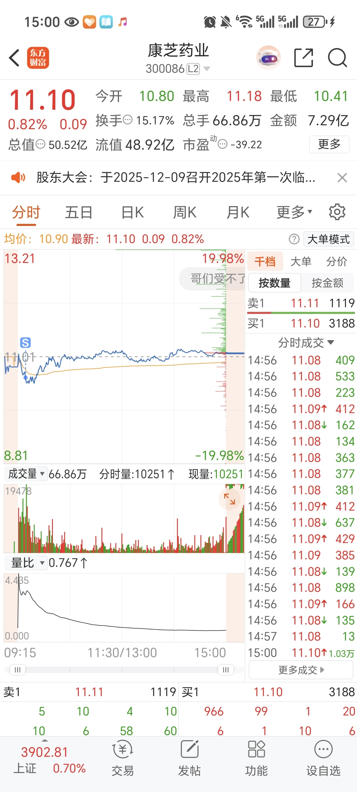 $康芝药业(SZ300086)$ 格局时不拉,,一割就涨