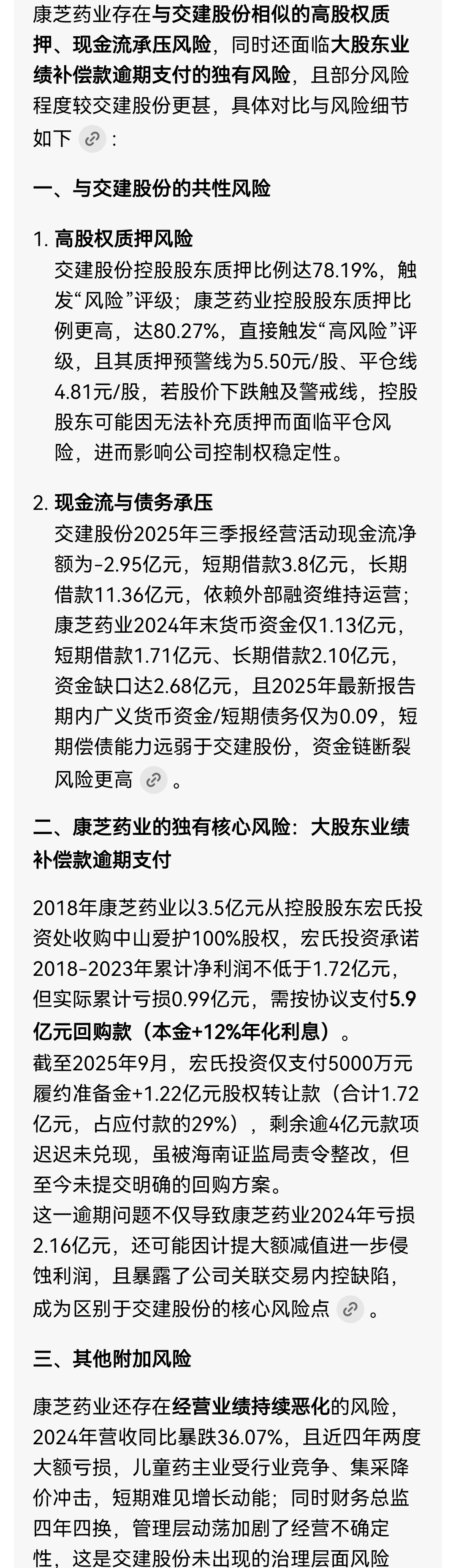 $康芝药业(SZ300086)$ 不要抱有任何幻想,好股多的是,为啥要瞒着暴雷的风险?还好前几天卖了交建股份,感谢网友分享的图!$交建股份(SH603815)$