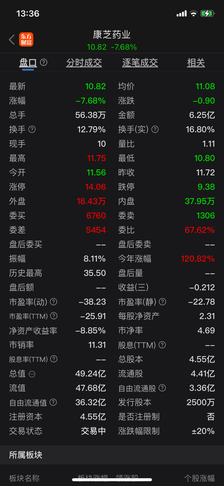 $康芝药业(SZ300086)$ 看看今天跑多少外盘,今年涨了120%,应该回调了