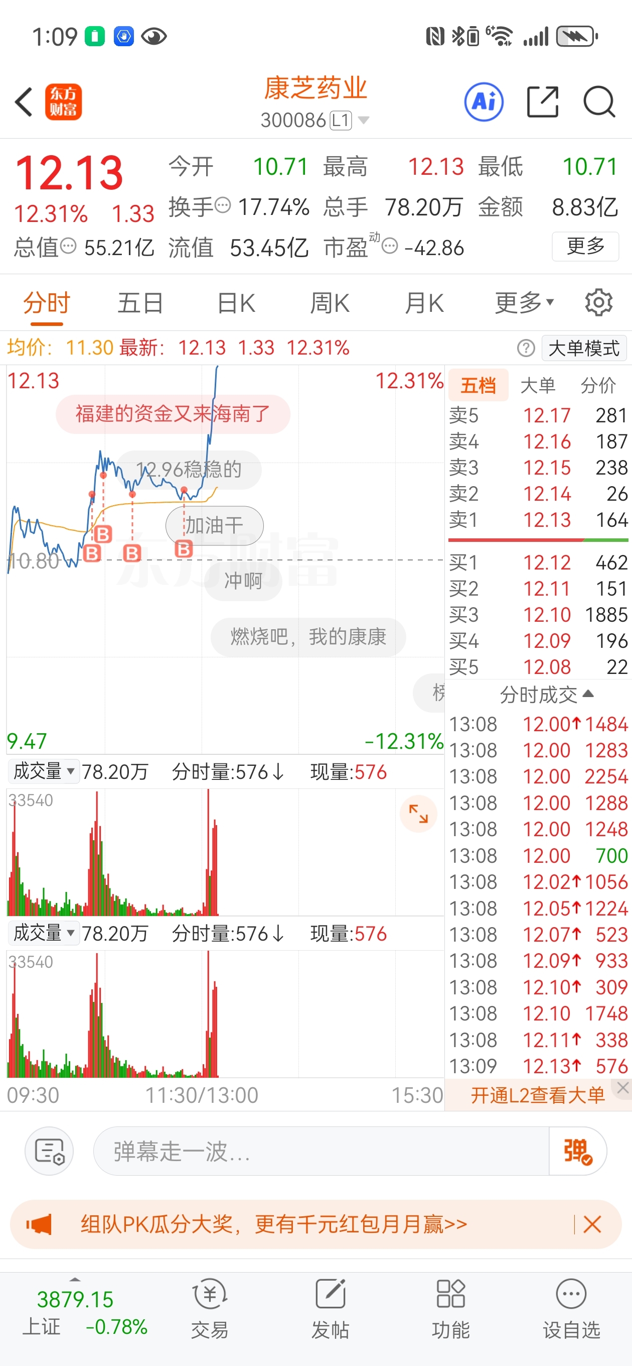 $康芝药业(SZ300086)$ 不知道买的对不对 希望不是一日游
