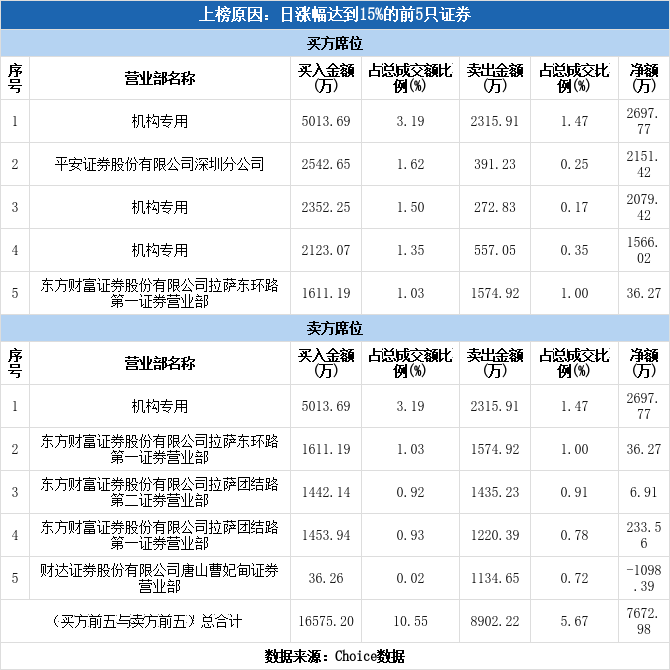 深交所2025年12月10日交易公开信息显示,康芝药业因属于日涨幅达到15%的前5只证券而登上龙虎榜。康芝药业当日报收12.47元,涨跌幅为15.46%,换手率30.31%,振幅19.35%,成交额15.71亿元。
