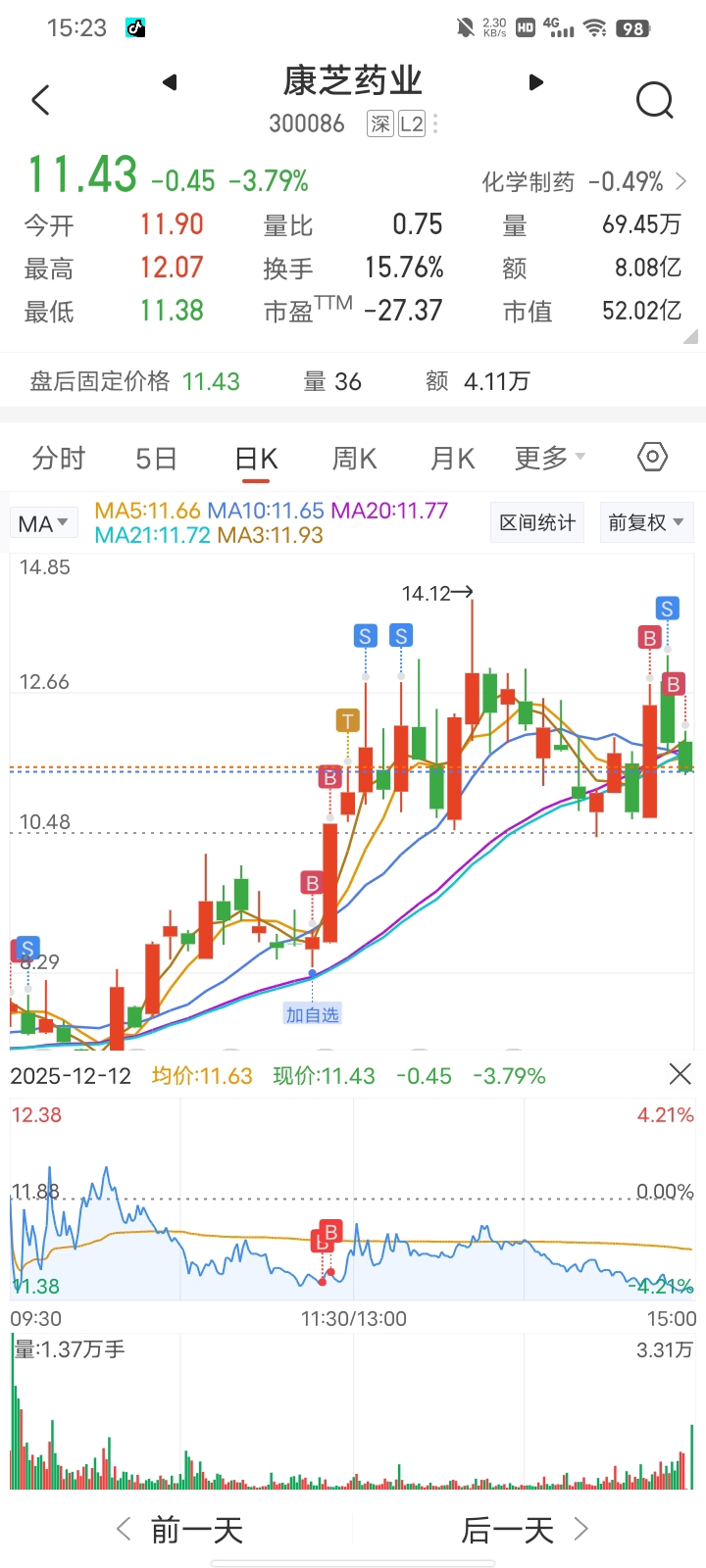 $康芝药业(SZ300086)$ 今天埋我7分钱,很不爽