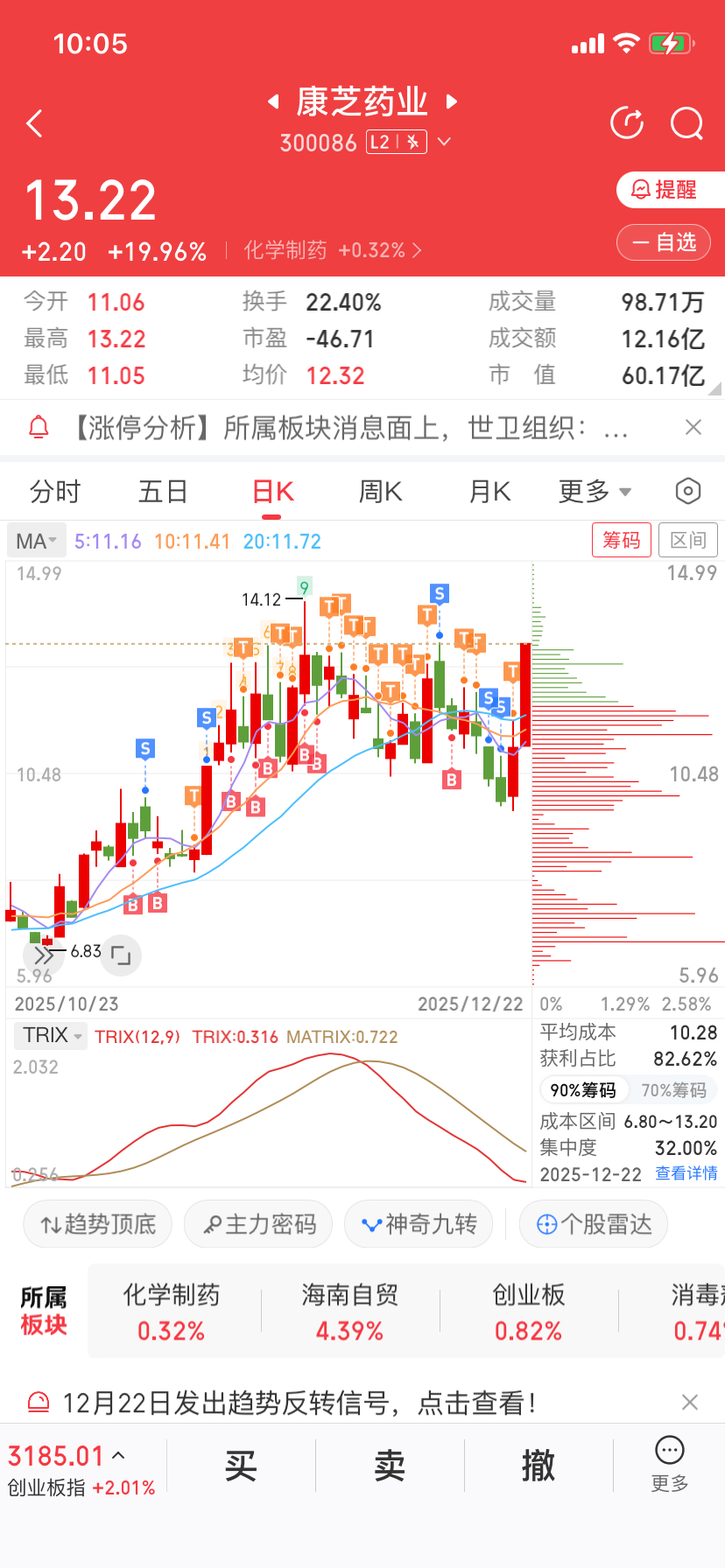 $康芝药业(SZ300086)$ 重仓变成轻仓 无语 成本24